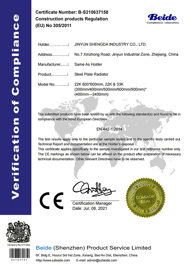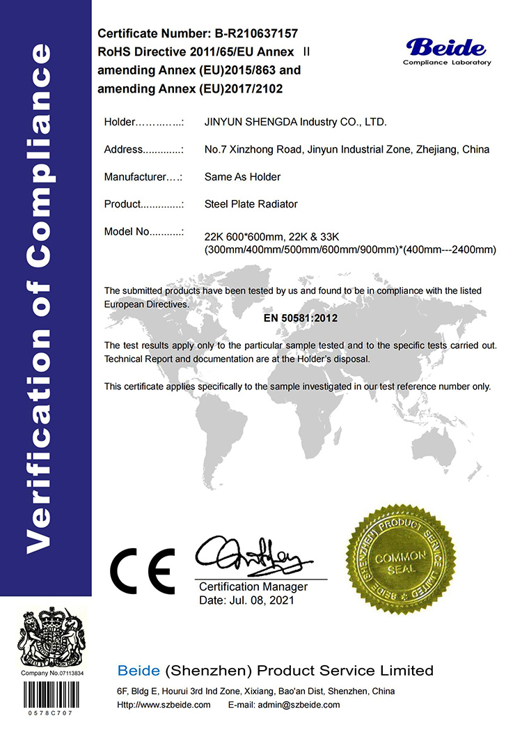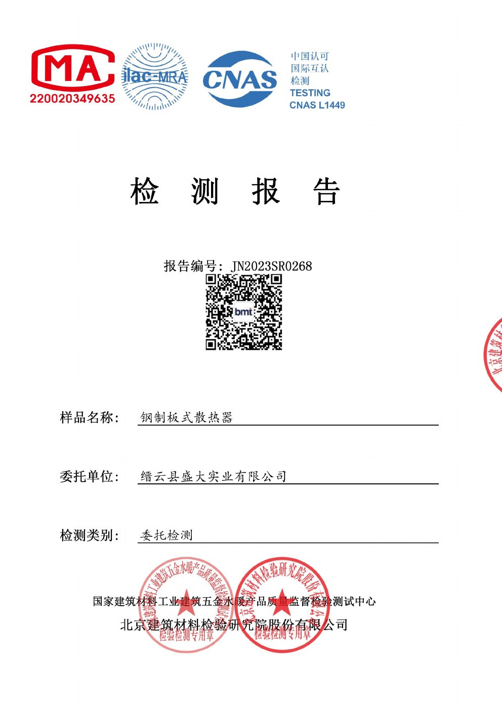 REWARM雷沃姆 鋼制板式散熱器 檢測報告