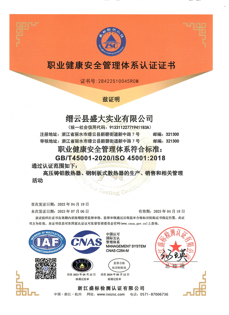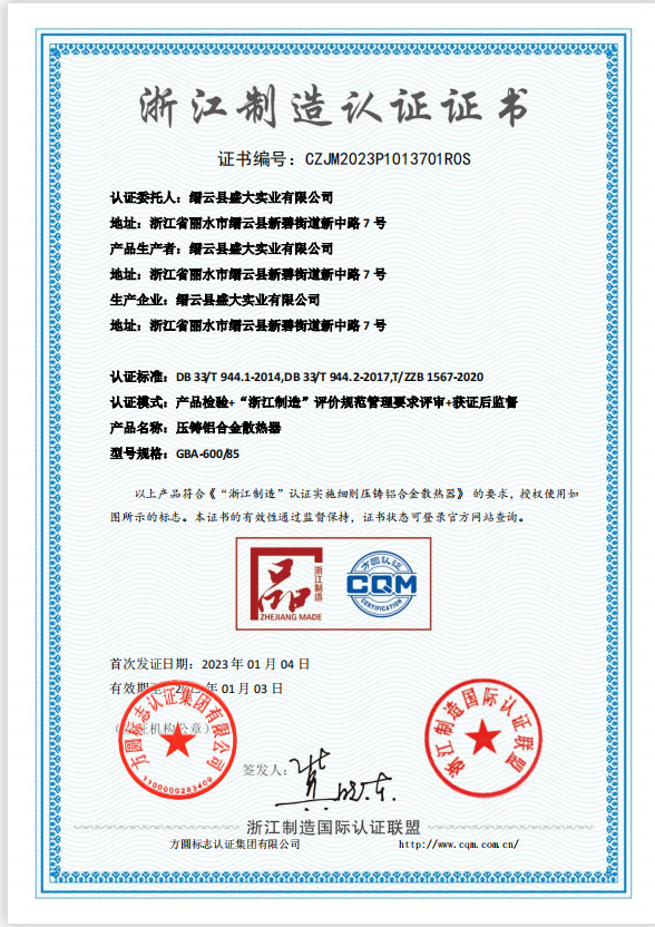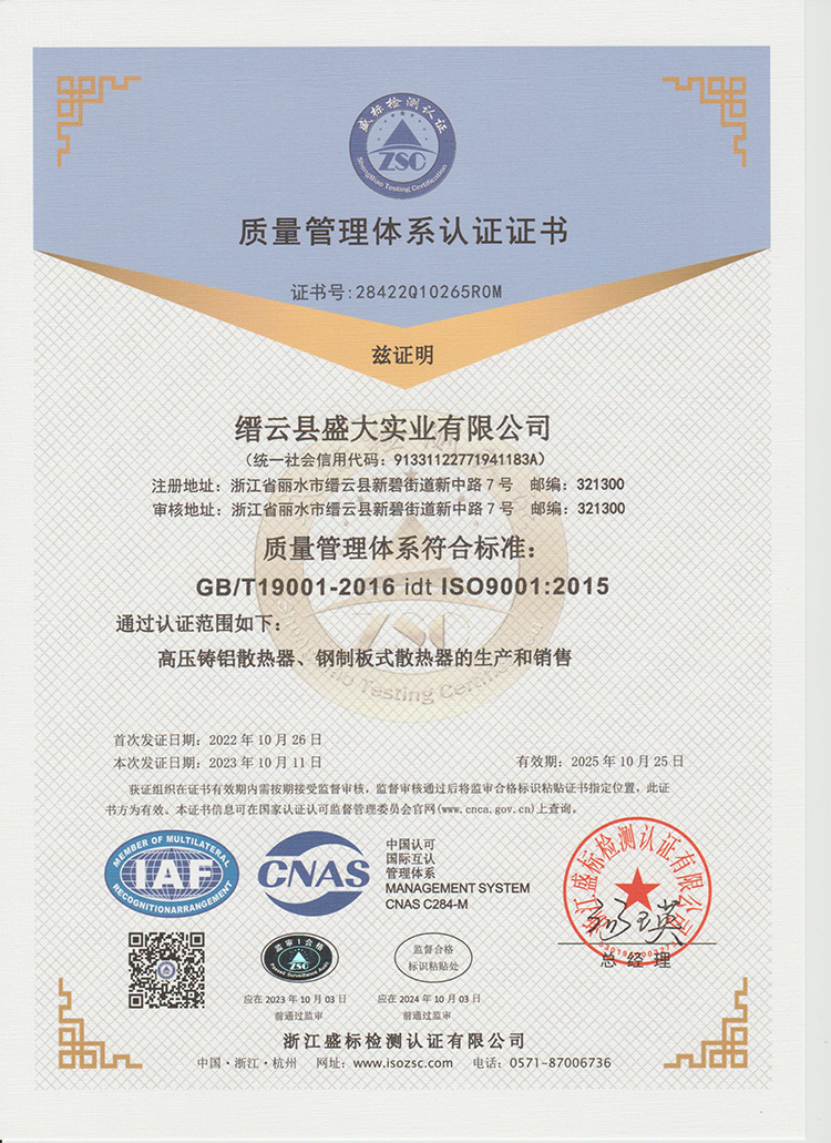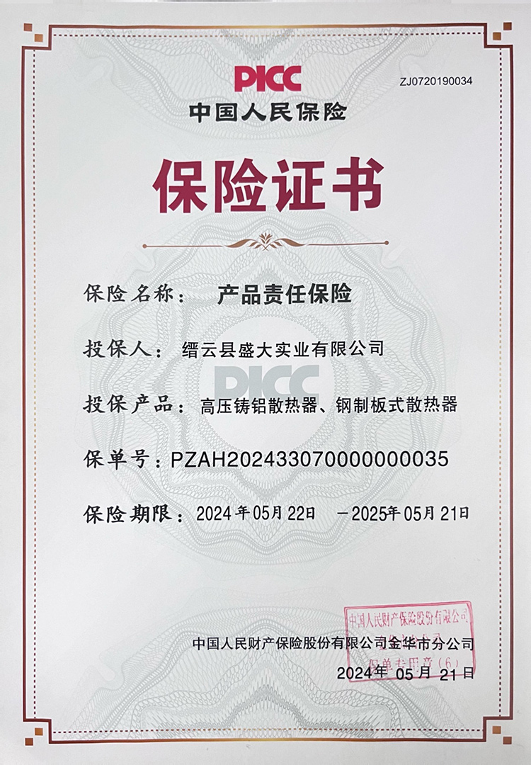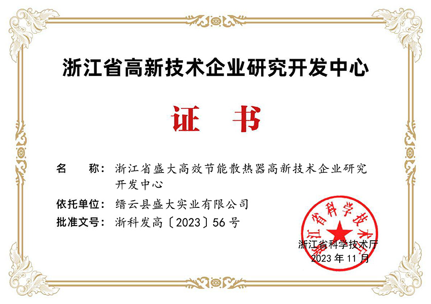 專利證書 一種散熱效果好的鋼制板式暖氣片